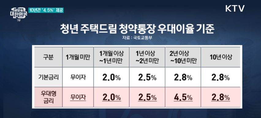 청년 주택드림 청약통장 우대이율 기준.(출처=KTV)