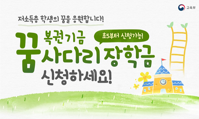 교육부는 2025년부터 ‘복권기금 꿈사다리 장학금’의 신청 대상을 초등학교 5학년까지 확대하고, 총 지원 인원도 3,000명으로 증가했다고 발표했습니다. 이 장학금은 저소득층 학생의 대학 진학까지 이어지는 연계 지원을 목적으로 하며, 성장멘토링, 맞춤형 컨설팅 등 다양한 프로그램도 함께 제공됩니다. 특히 초등학생은 월 15만 원, 고등학생은 월 35만 원까지 지원받을 수 있어 학업과 성장을 동시에 도울 수 있는 좋은 기회입니다.
